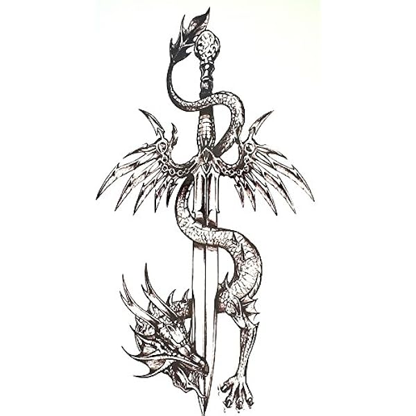 Linien Tattoo Fake Tattoo Schwert Und Drachen Xq025 Amazon De Beauty